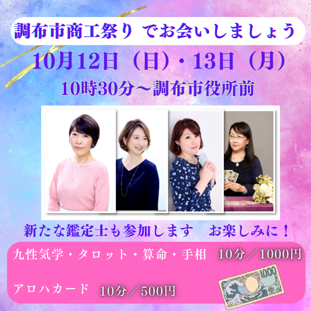 10月13日(月)は10時30分より 調布市商工祭りに参加しております